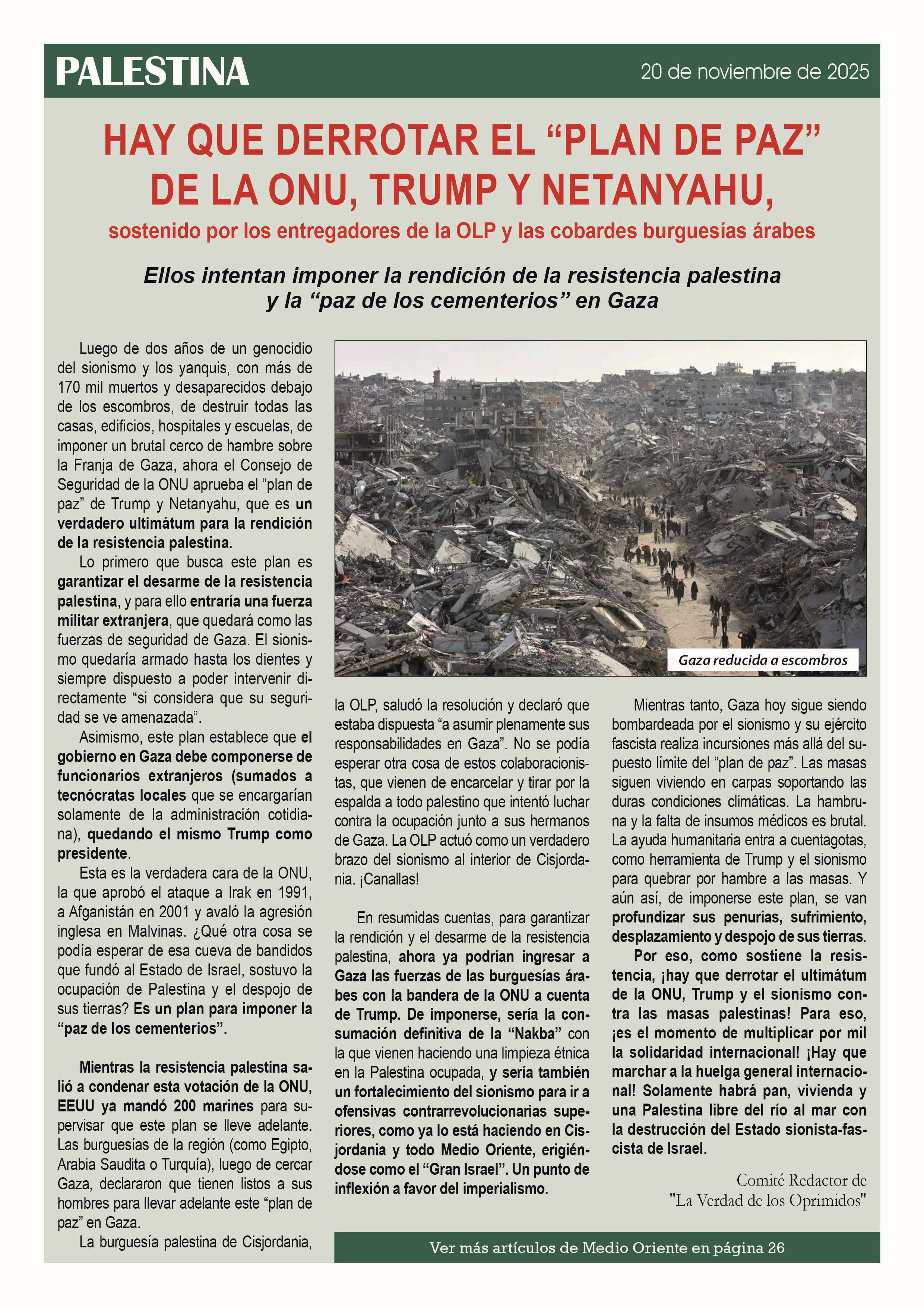 ¡Hay que derrotar el “plan de paz” de la ONU, Trump y Netanyahu! Ver más