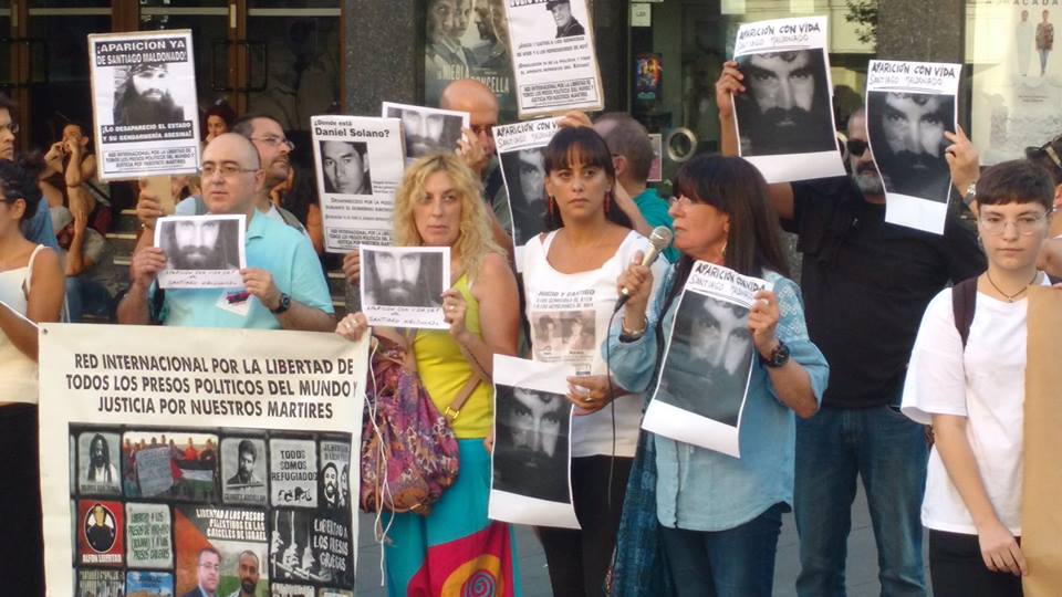 Hemos realizado esta convocatoria desde el Comité por la aparición con vida de Santiago Maldonado Madrid, integrado por Asociación Ex Detenidos Desaparecidos, Casapueblos, Red Internacional por la libertad de los presos políticos, CGT (Confederación Territorial de Madrid, Castilla la Mancha y Extremadura), Solidaridad Obrera, Plataforma Sindical de la EMT, CRT (Corriente Revolucionaria de Trabajadores y Trabajadoras), Agrupación de mujeres Pan y Rosas, Democracia Obrera y Red Roja.