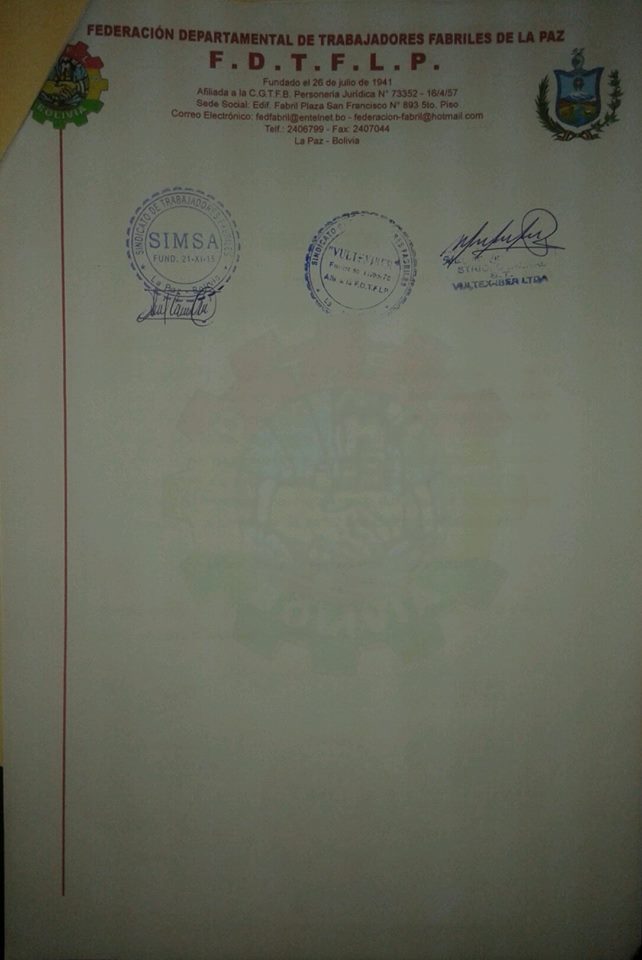 - Federación Departamental de Trabajadores Fabriles de La Paz