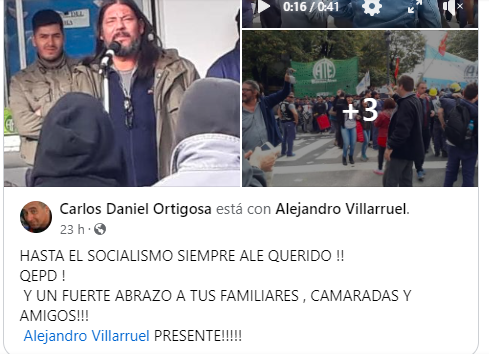 Reproducimos el saludo de Carlos Ortigosa, reconocido luchador del Astillero Río Santiago, al compañero Alejandro Villarruel