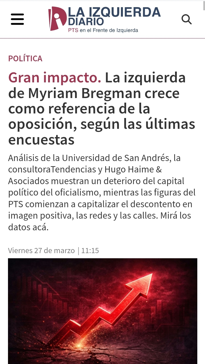 Publicación en Izquierda Diario: el PTS celebrando el aumento de la "imagen positiva" de Bregman en las encuestas