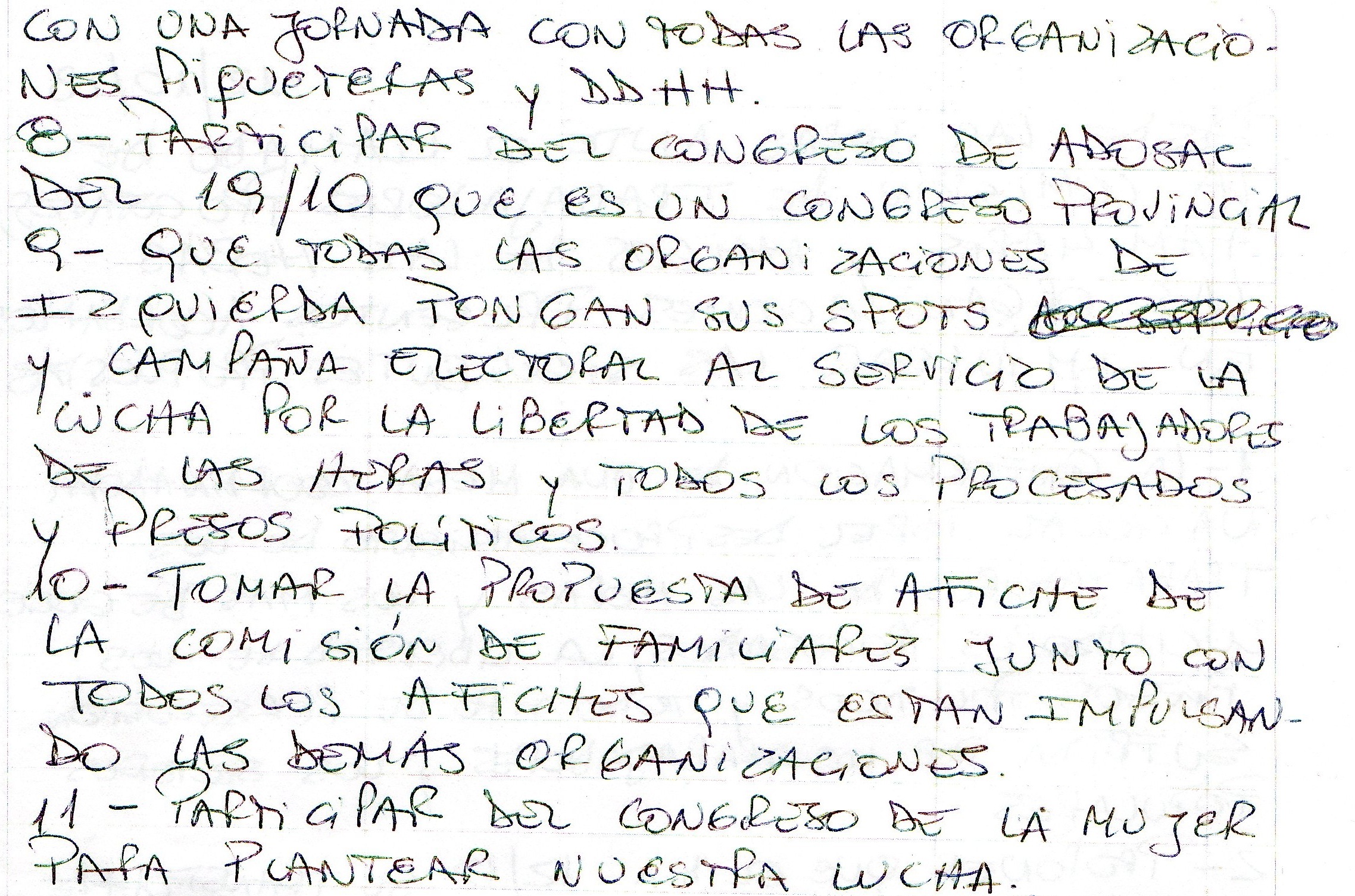11- Participar del Congreso de la Mujer para plantear nuestra lucha. |