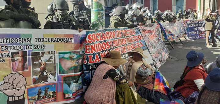 Al llegar a la ciudad de La Paz, se encontraron con un contingente de la policía asesina y torturadora de la UTOP, para que no puedan ingresar a la Casa Grande del Pueblo. Sin embargo, cansados de tantas promesas advertían que no se irían hasta que el gobierno de Arce los reciba y a su vez nuevamente denunciaban que el gobierno incumplióel compromiso de mantener reuniones periódicas para el seguimiento de sus casos y que, además, ningún ministro les ha dado alguna respuesta a sus pedidos de justicia.