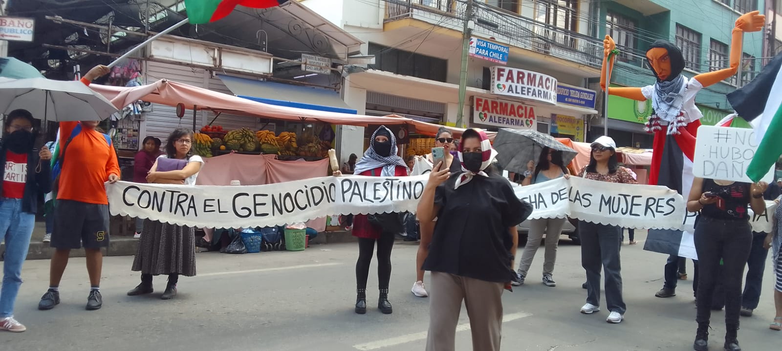 El día miércoles 26 de febrero se dio al encuentro de diferentes organizaciones feministas y activistas pro-palestina junto a organizaciones de izquierda en un plantón frente al juzgado de la ciudad de Cochabamba acompañando a las compañeras y sus abogados para exigir el fin al proceso judicial.