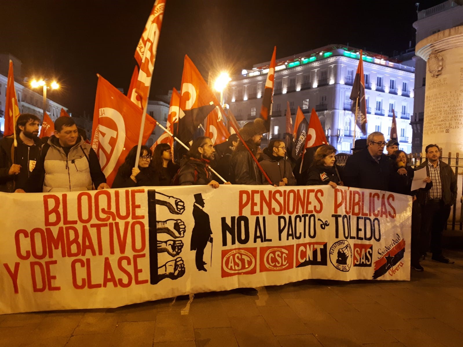 ¡Abajo el Pacto de Toledo! ¡Por unas pensiones dignas! ¡Jubilación a los 55 años con el 100% del salario!