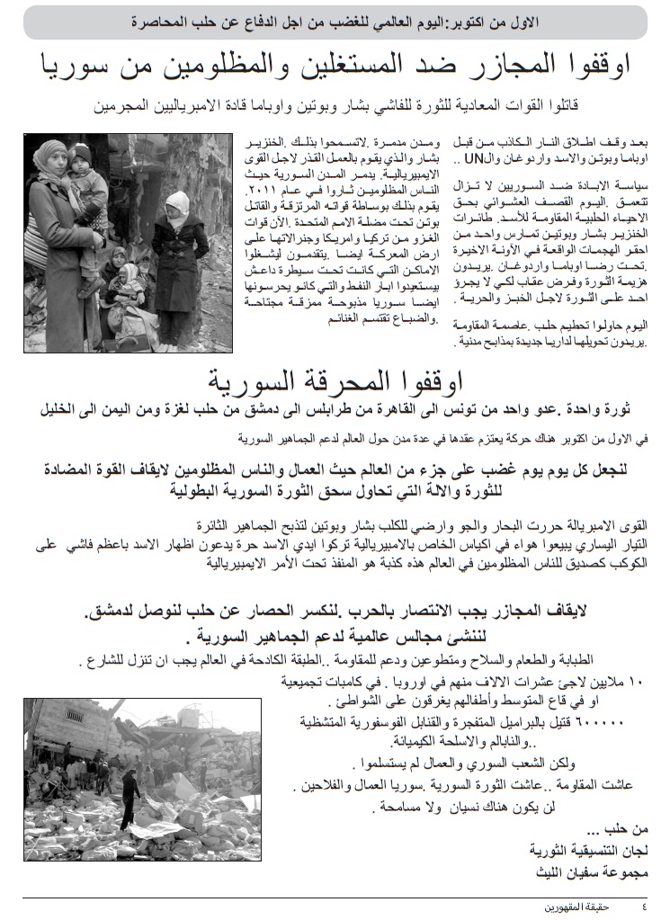 - Hommage au camarade Abu al Baraa, le dirigeant de la brigade Léon Sedov et référant de la révolution syrienne Lire