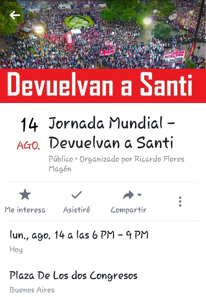Face à la disparition forcée de Santiago Maldonado Meeting Puerta del Sol- Madrid