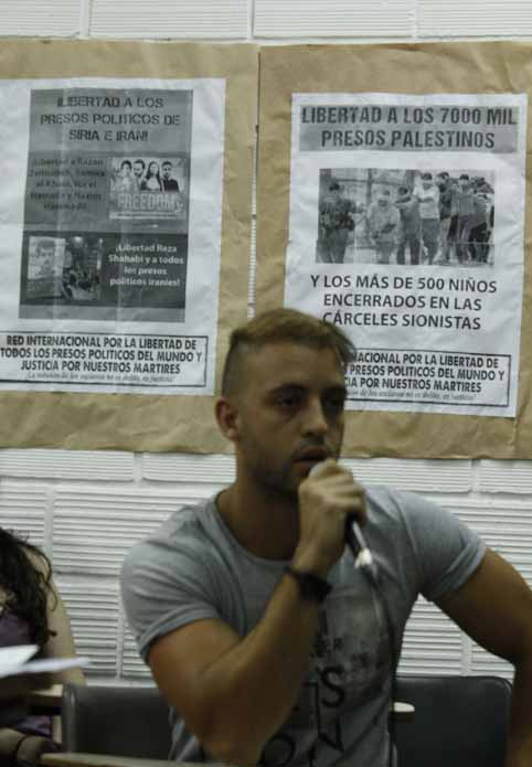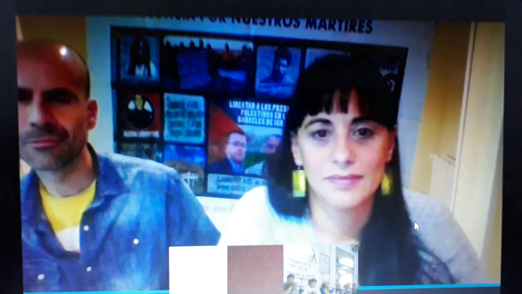 Dans cette conférence étaient présents : Omar Mansilla (pétrolier de Las Heras condamné à 5 ans de prison) et Claudia Bazan (épouse de José Rosales, condamné à réclusion à perpétuité), avec Isabelle (Mère du prisonnier politique Facundo Jones Huala), Paul Pimentel (de l’ Assemblée Permanente du droit de l’homme- La Matanza), des dirigeants socialistes du Sud de l'Afrique, Carolina Abregú (La colère féministe) et Miriam (mère de Diego Aljanati)