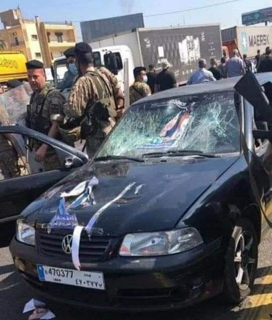 Des jeunes libanais ont réalisé une mobilisation et détruit une voiture chargée de banderoles, affiches et photos de Bachar Al Assad qui se dirigeait à l’ambassade où ont lieu les élections appelées par le chien fasciste Bachar.