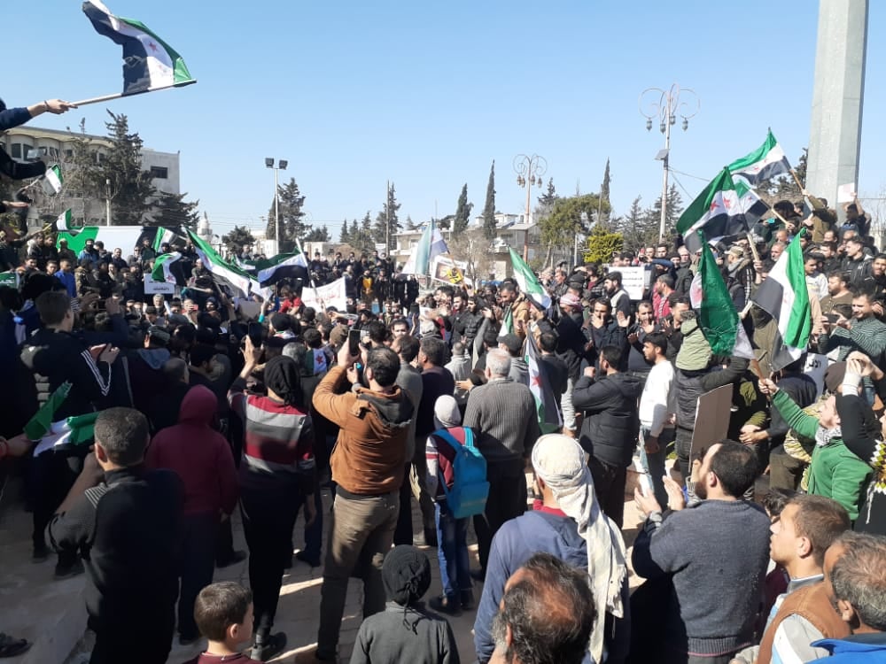 Siria - 19 de febrero de 2021 Marchas en Idlib denunciando de ilegítimo a Al Assad y sus elecciones, por asesino del pueblo Ver más
