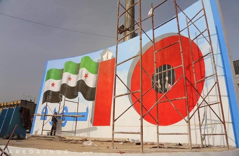 Mural de Aizi, el muralista de la revolución, en el centro de Idlib, hoy demolida a bombazos