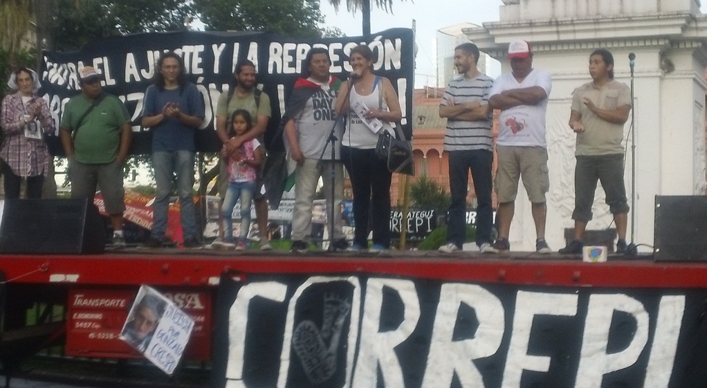 Intervención de Omar Mansilla y Claudia Pafundi durante el acto de CORREPI