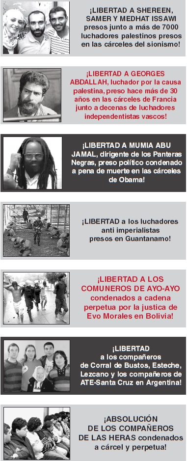 AVANZA LA PELEA POR CONQUISTAR UNA JORNADA DE LUCHA INTERNACIONAL POR LA LIBERTAD DE TODOS LOS PRESOS POLITICOS DEL MUNDO