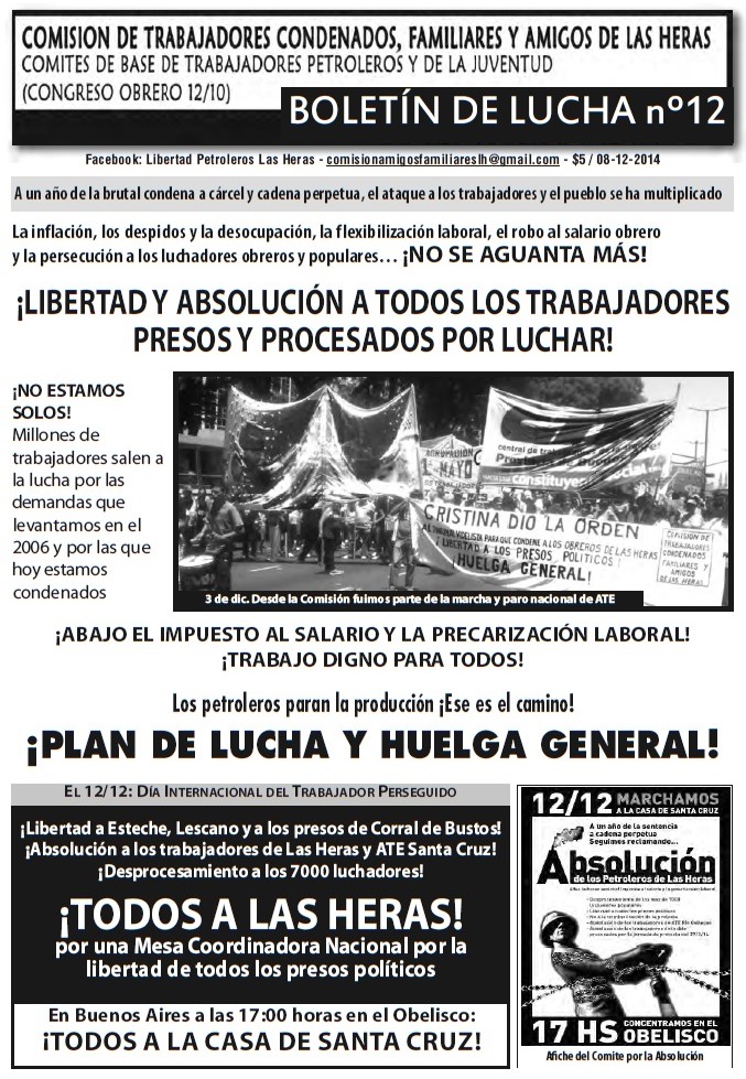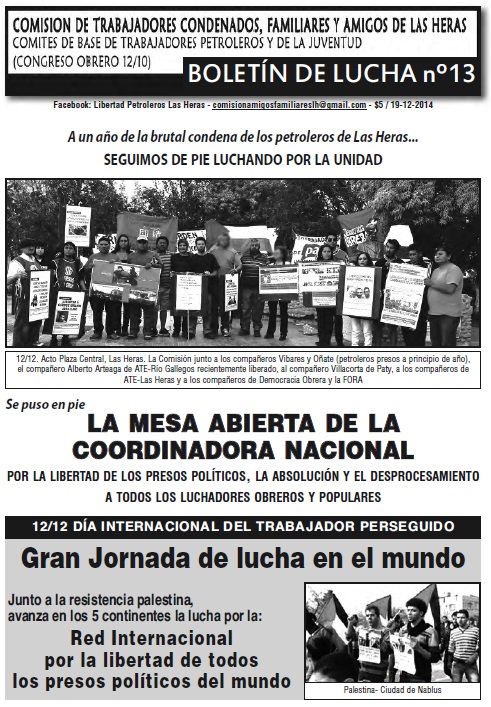 ¡Absolución a los obreros de Las Heras, libertad a todos los presos políticos, desprocesamiento de todos los luchadores!