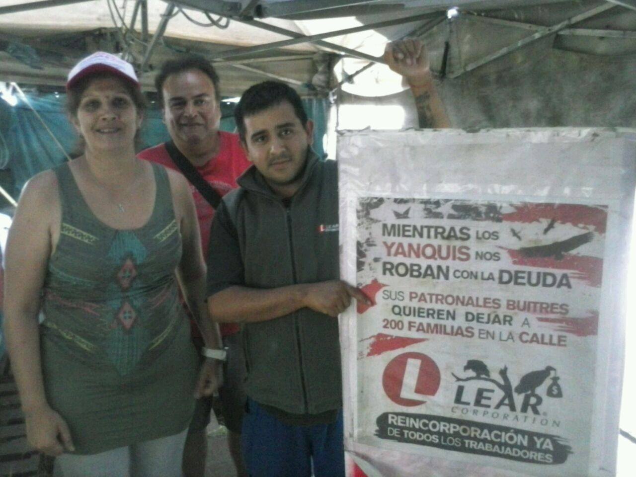 Claudia Pafundi, de la Comisión de trabajadores condenados, familiares y amigos de Las Heras y obreros de la Comisión de trabajadores de Paty junto a los compañeros de Madygraf (ex–Donelley) y en la carpa de los compañeros despedidos de LEAR