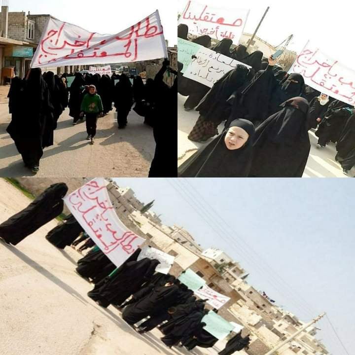 Todos los manifestantes eran esposas de mártires y esposas de detenidos en las cárceles de Al-Julani.