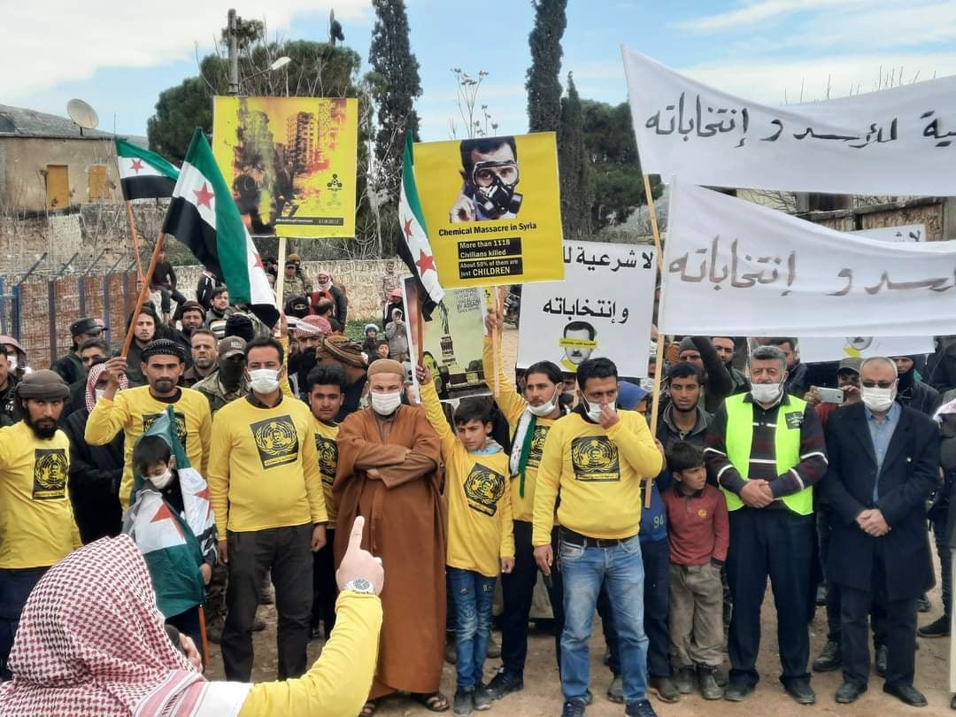 Marchas en Idlib denunciando de ilegítimo a Al Assad y sus elecciones, por asesino del pueblo sirio.