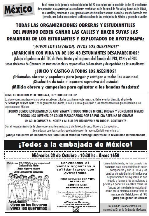 Ver llamamiento de los estudiantes de la UNAM de México a una jornada internacional de lucha por la aparición con vida de los 43 estudiantes