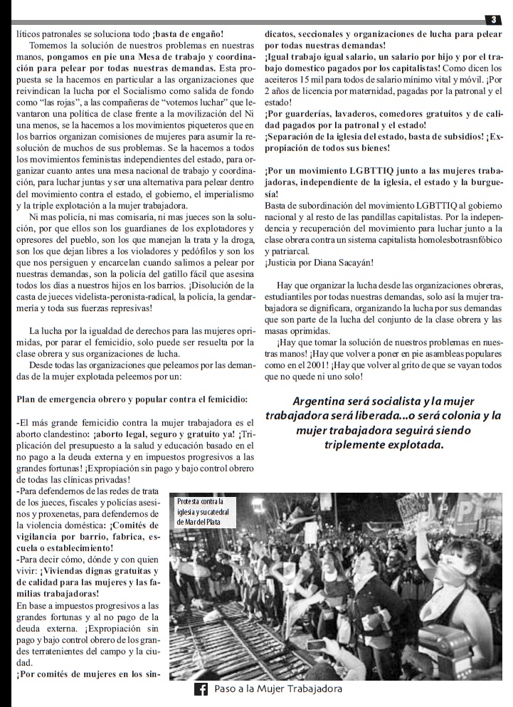 SECCIÓN: "PASO A LA MUJER TRABAJADORA"