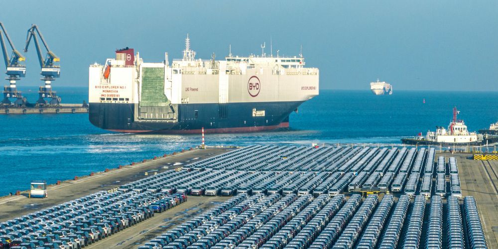 Coches eléctricos chinos de la empresa BYD varados en los puertos de Europa
