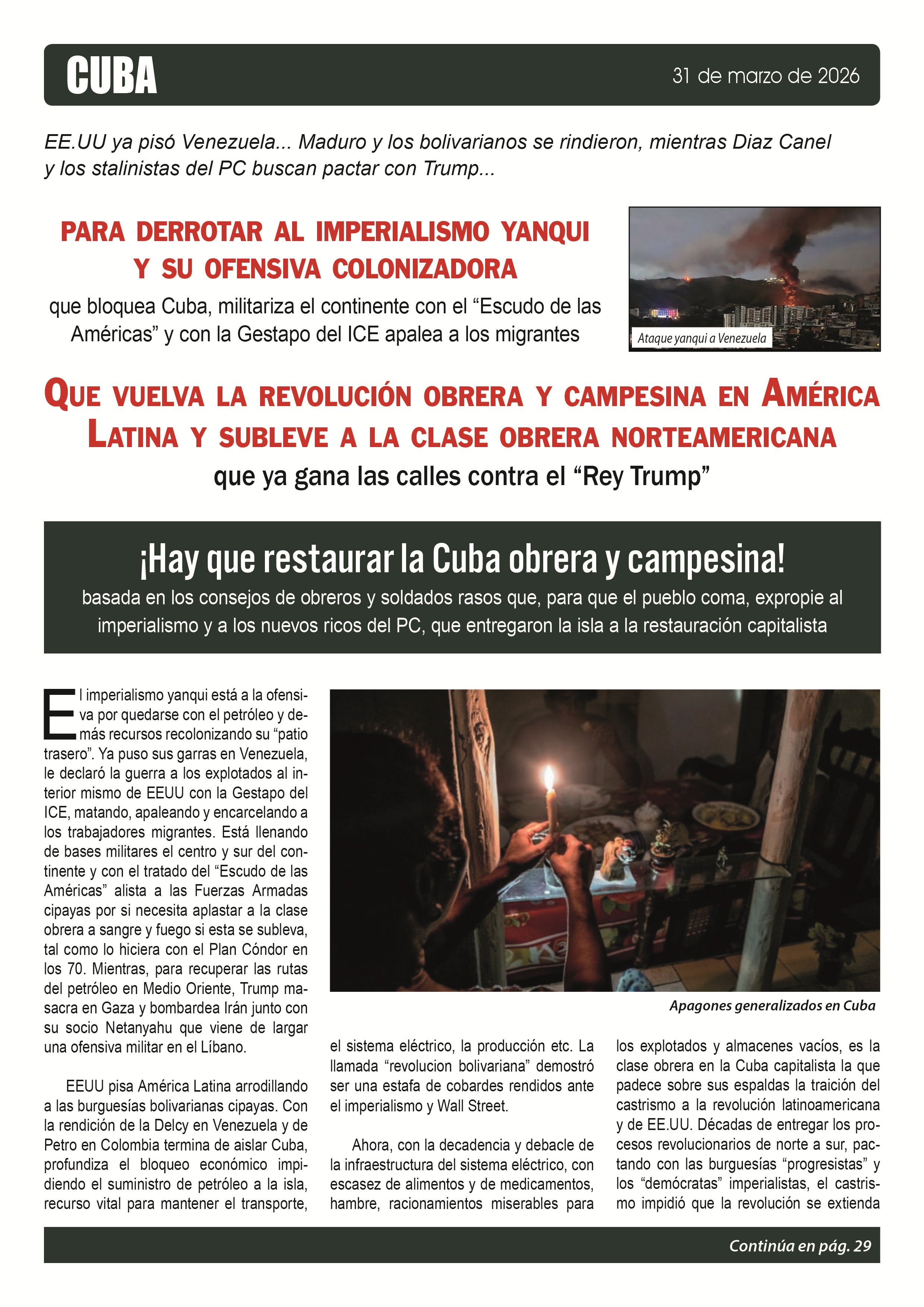 ¡Que vuelva la revolución obrera y campesina en América Latina y se subleve la clase obrera norteamericana!