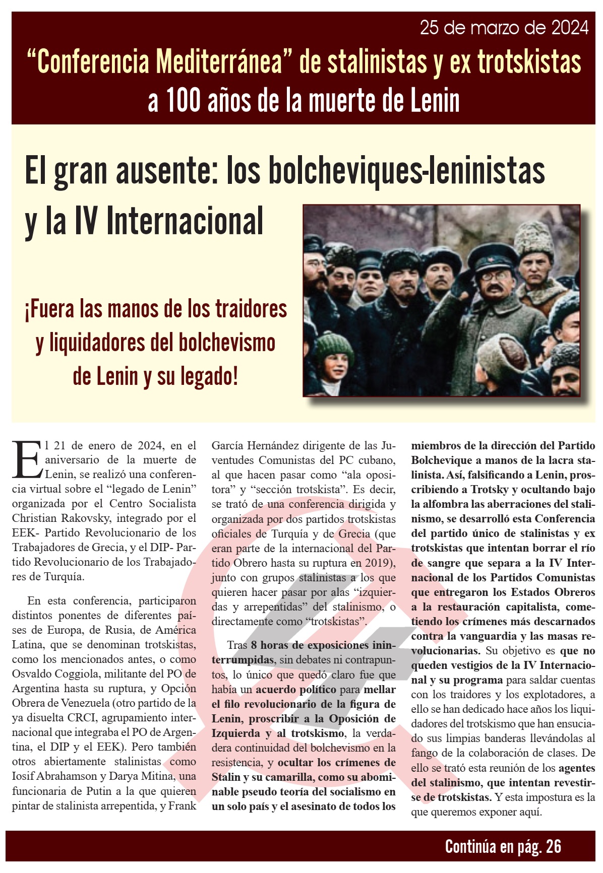 “Conferencia Mediterránea”: stalinistas y ex trotskistas a 100 años de la muerte de Lenin.