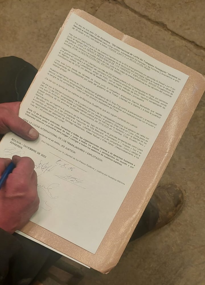 El Taller Eléctrico Patiño (T.E.P.) de la Empresa Minera Huanuni y Rafael Lineo Morales trabajador de la Radio Nacional de Huanuni (R.N.H.), se adhieren a la jornada de lucha por el Día Internacional del Trabajador Perseguido