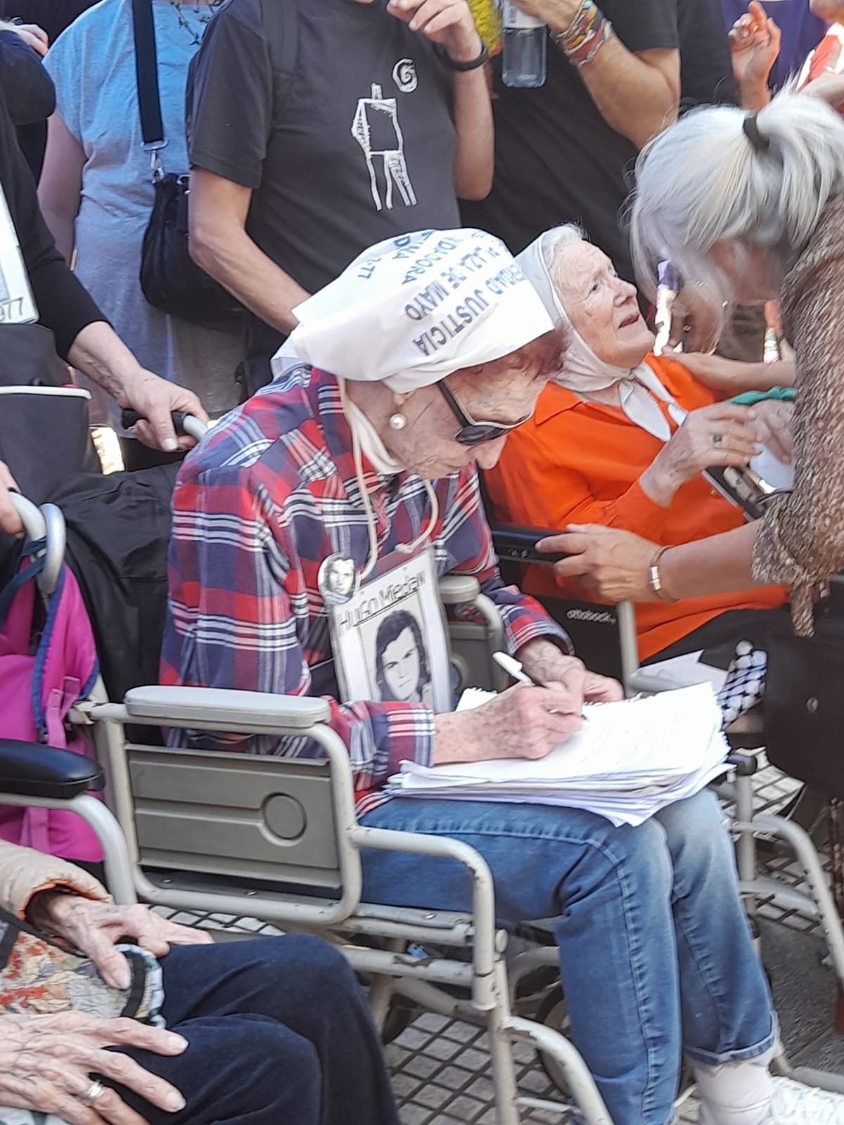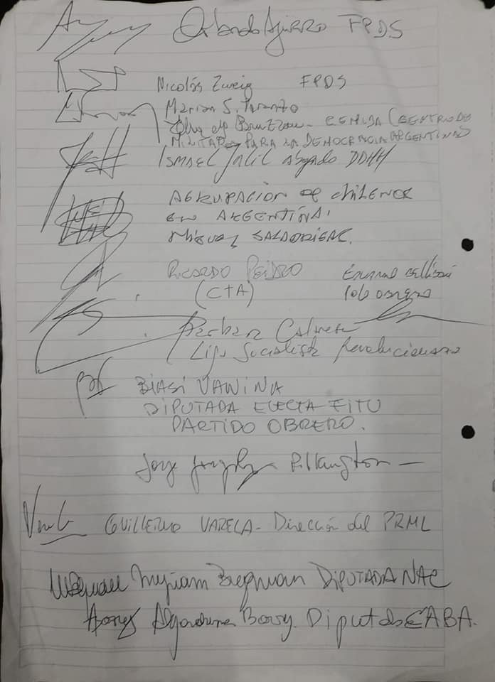 Elia Espen, Nora Cortiñas y Mirta Baravalle, Las Madres de Plaza de Mayo – Línea Fundadora, encabezaron las firmas de apoyo y adhesión a nuestra pelea, una vez más y como desde el primer día las madres peleando junto a nosotros. Nos llena de emoción.