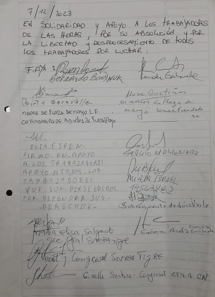 Se pone en pie una enorme solidaridad con la lucha de los trabajadres condenados de Las Heras y los presos palestinos