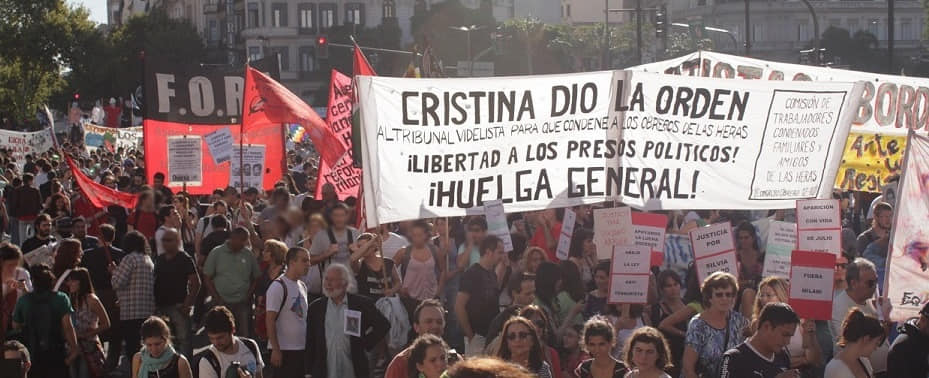 Desde la Comisión de Trabajadores Condenados, Familiares y Amigos de Las Heras enviamos un enorme abrazo a todos los que hoy se levantan y mantienen en pie la bandera de justicia y cárcel a todos los responsables de esta masacre llevada adelante en el 2002.