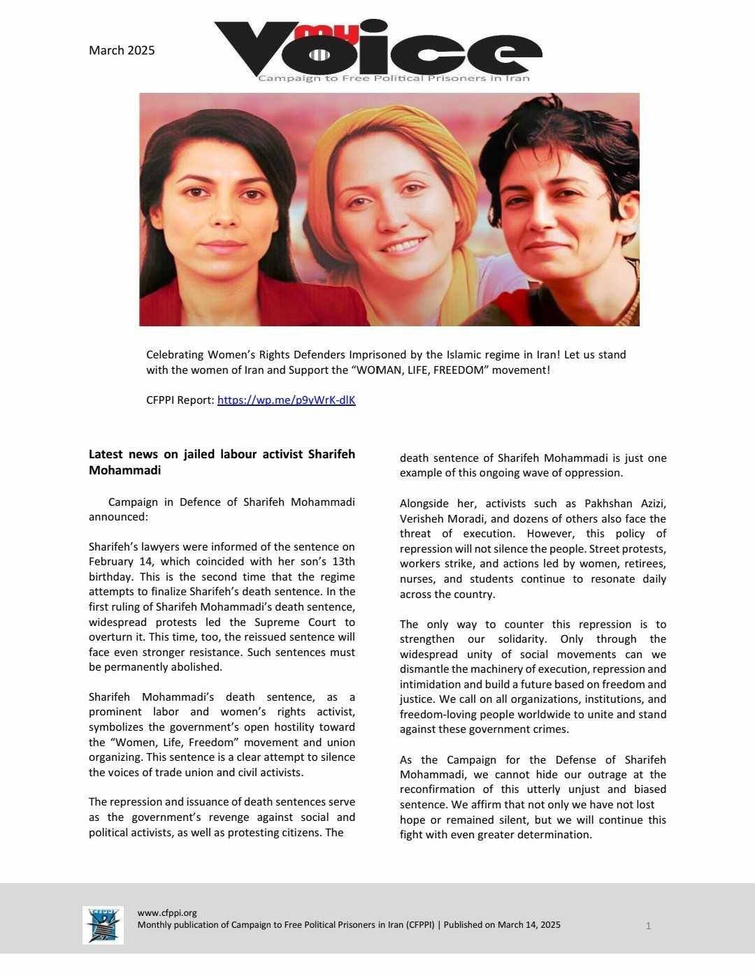 El último número de la campaña para liberar a los presos políticos en Irán (CFPPI) boletín mensual. Esta edición destaca la difícil situación de las presas políticas en Irán.