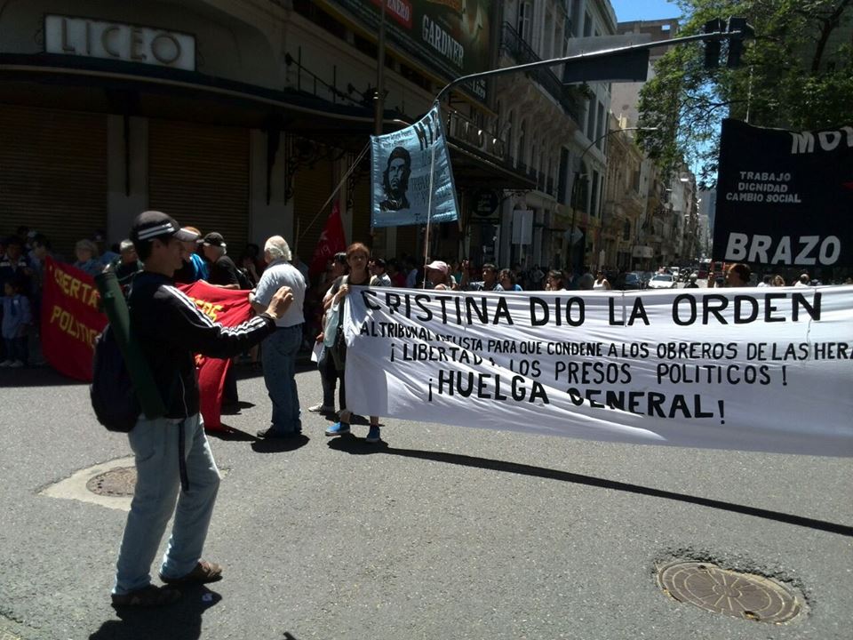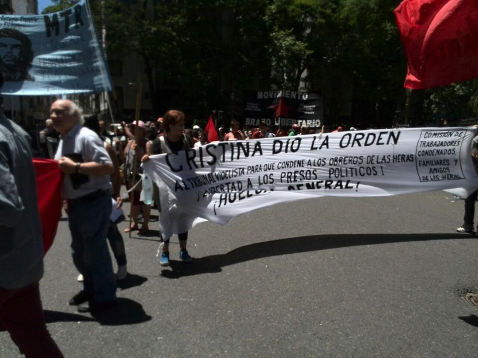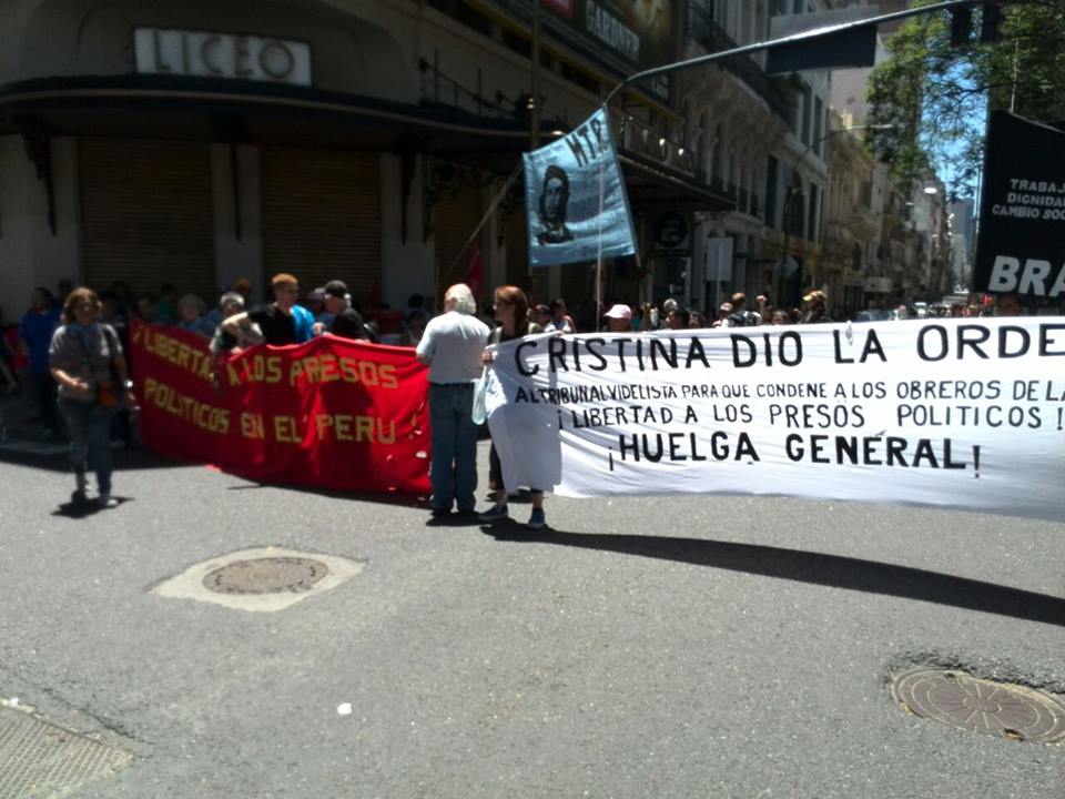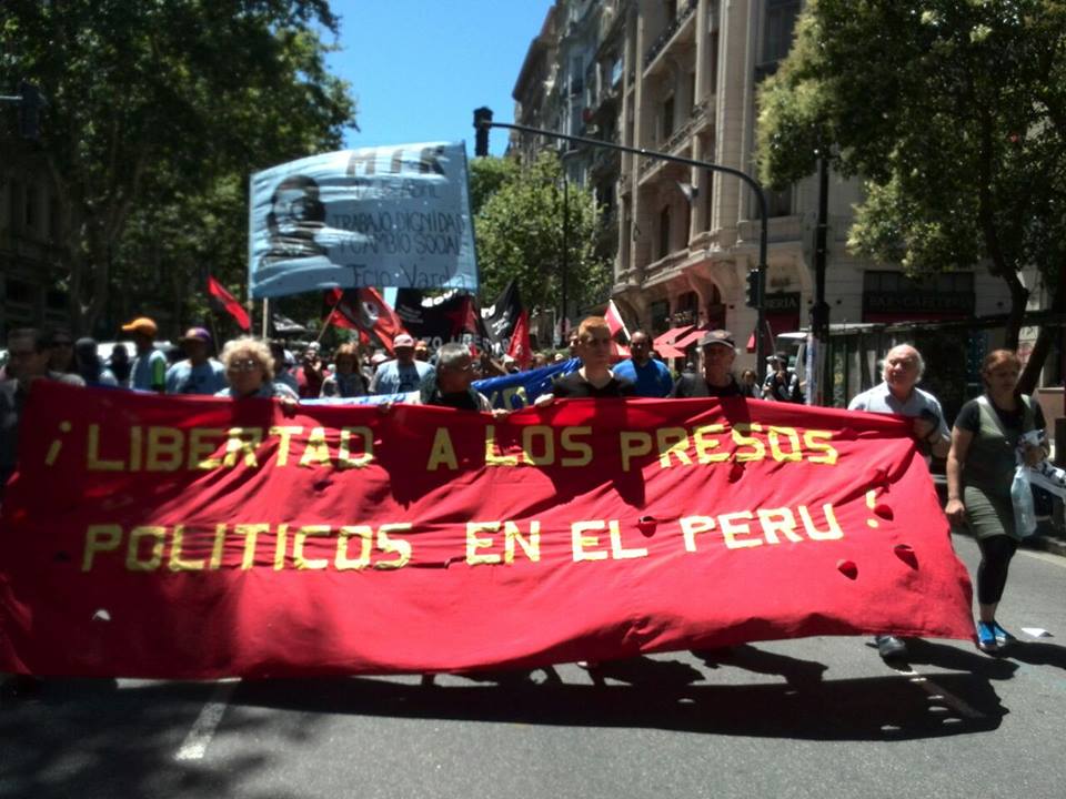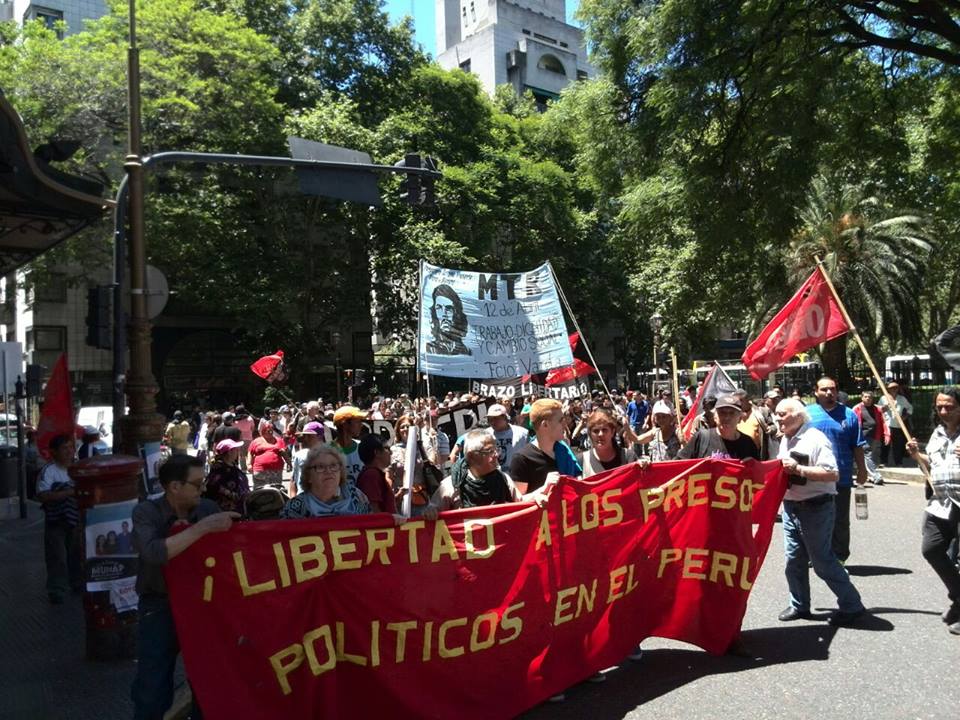 La Comisión de Trabajadores Condenados, Familiares y Amigos de Las Heras, representada por la compañera Claudia Pafundi, estuvo en la marcha por la libertad de los presos políticos peruanos frente al Consulado de Perú, con todas las organizaciones y junto al compañero Quispe ex preso político peruano