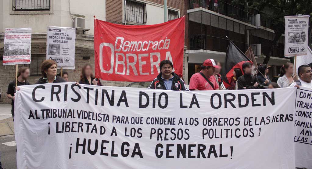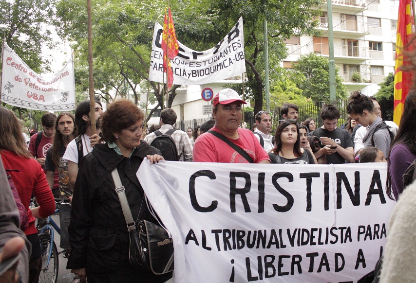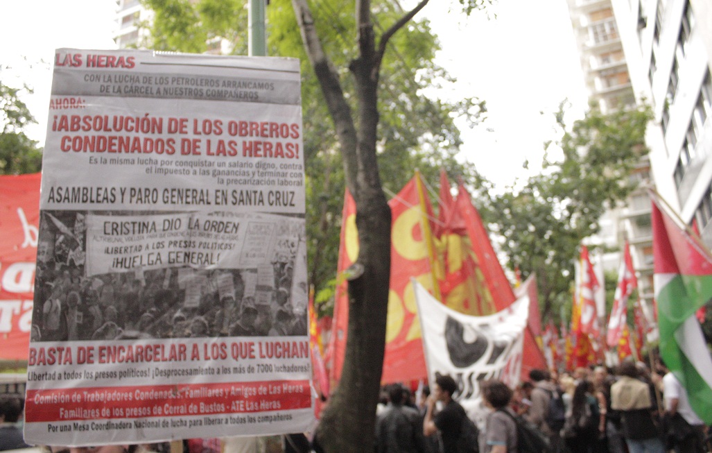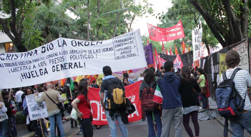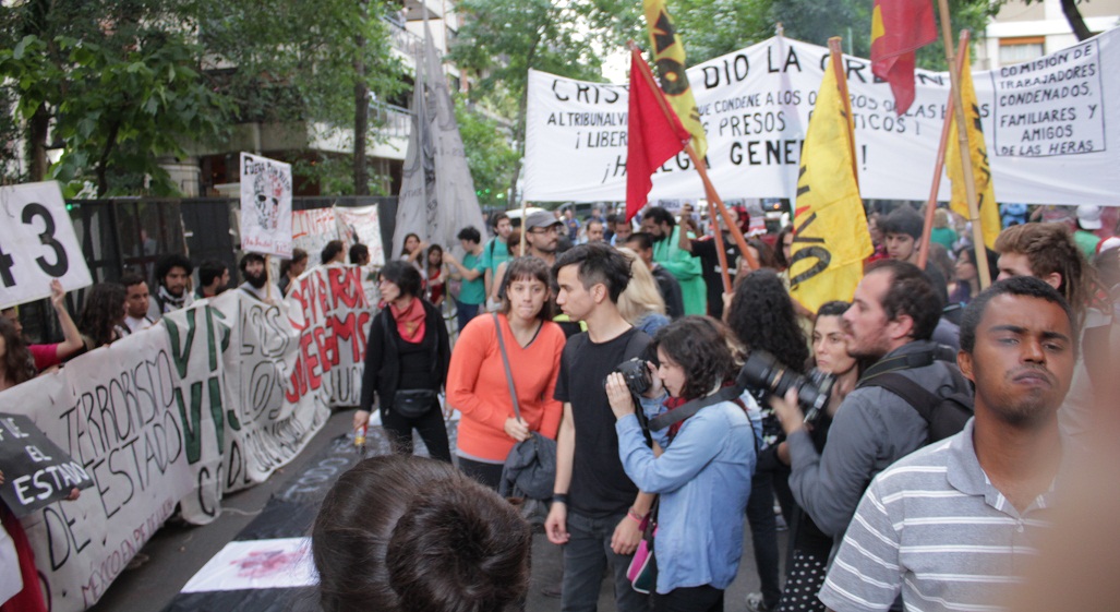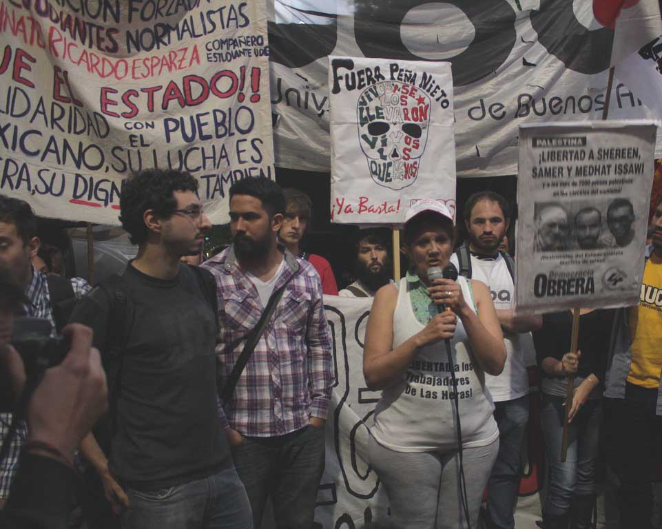 Claudia Pafundi, de la Comisión de trabajadores condenados, familiares y amigos de Las Heras, en la movilización a la Embajada de México en Buenos Aires, exigiendo justicia por los 43 estudiantes mexicanos desaparecidos de la Escuela Normal Rural de Ayotzinapa, en el estado de Guerrero