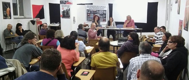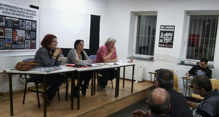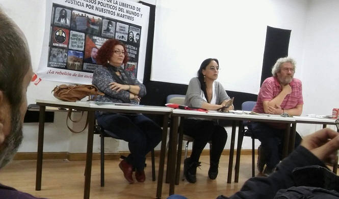 El 18 de octubre se realizó en Madrid un acto por la absolución de los petroleros condenados de Las Heras y por la libertad de todos los presos políticos del mundo. Contó con la presencia de Elena Colorá, Madres contra la Represión, CGT, CNT, Plataforma Sindical EMT, Asamblea de VK x la Huelga General, Solidaridad Obrera, Cobas, Movimiento de apoyo al pueblo peruano, Plataforma por la libertad de Alfon y la Red Internacional por la Libertad de los presos políticos del mundo.