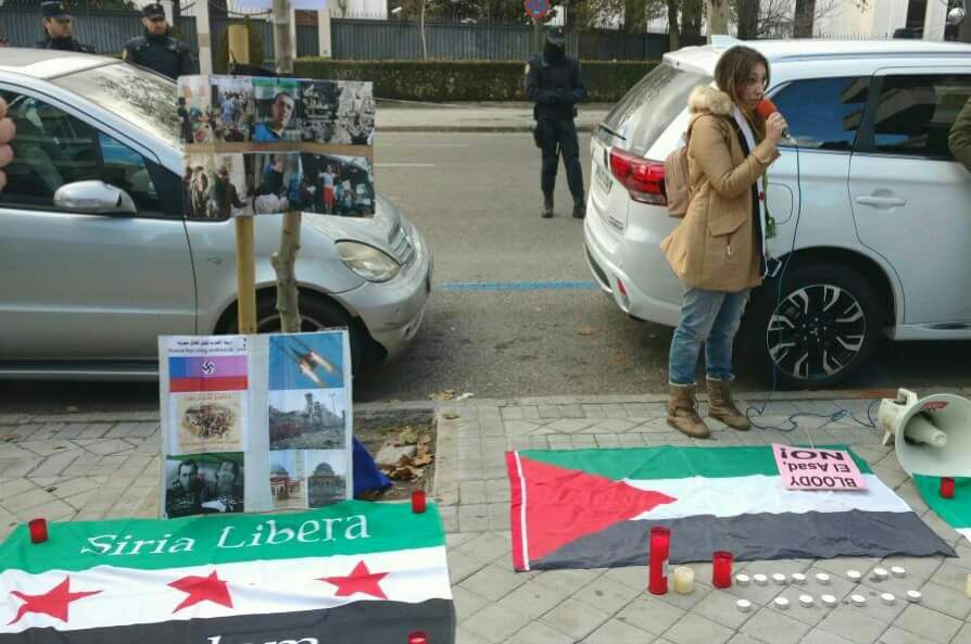 ‘"Hola, muy buenas a todos. Yo quiero decir que desde aquí, desde España estamos con vosotros, con el pueblo sirio hasta la victoria, la paz y la libertad, con el permiso de Dios. Estáis todos en mi corazón. Y la libertad llegará pronto, si Dios quiere. Hasta pronto"’
