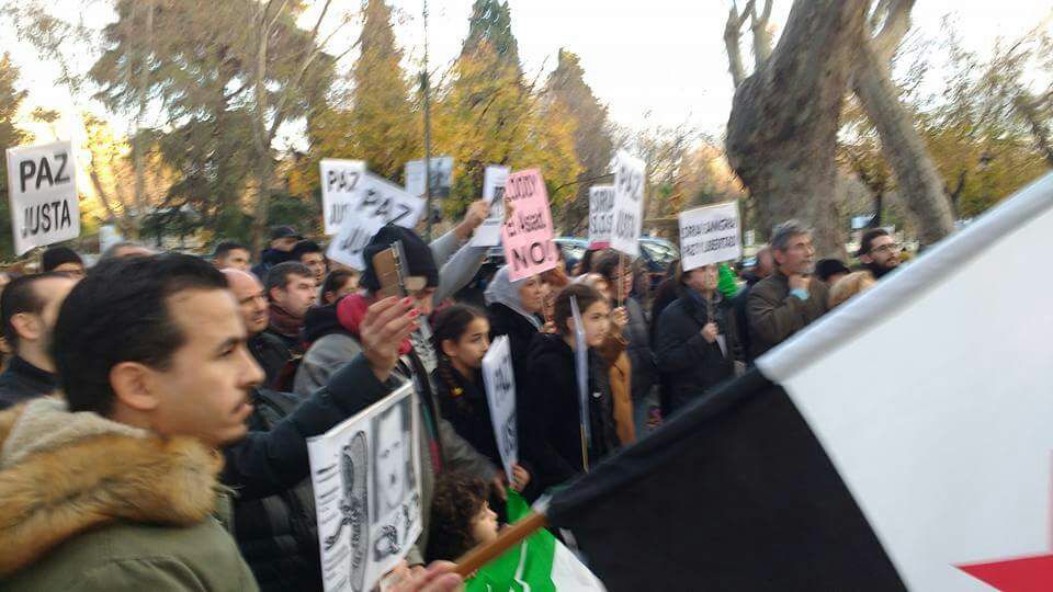 En el sexto aniversario de la revolución quiero mandar mis saludos a todos los revolucionarios que están en Siria, luchando contra el régimen de Assad y contra Rusia y a la población que está también luchando contra este fascismo.
