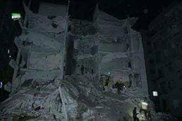 Un edificio residencial fue atacado en la ciudad de Idlib, dejando como primer resultado 12 mártires y cerca de 50 heridos, incluyendo a niños y mujeres, al caer un misil disparado por las fuerzas rusas desde el Mar Mediterráneo