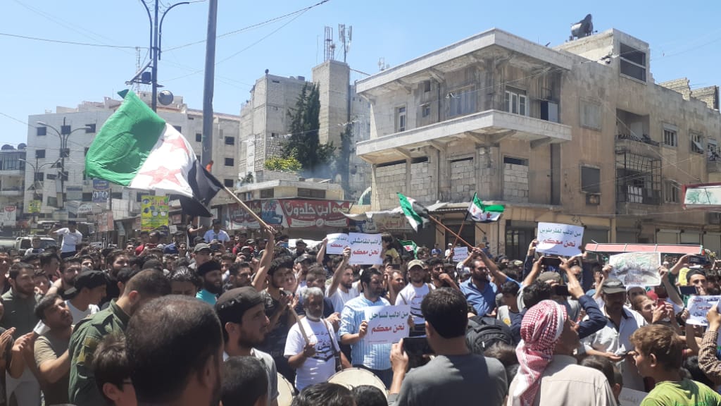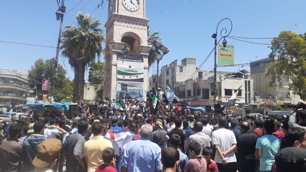 Marcha en Idlib en apoyo a las distintas movilizaciones que hay en toda Siria y contra la lira devaluada
