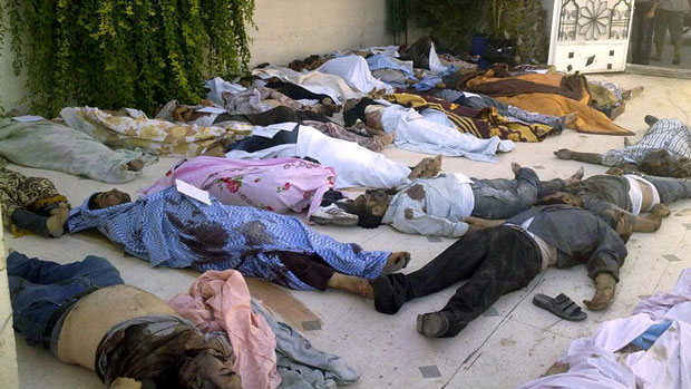 Lo que está masacrando Al Assad, desde hace  meses en Damasco, con armas químicas incluidas, es a un estado de insurrección y revuelta de los  explotados. Una caída del perro Al Assad en Damasco a manos de las masas  abriría, como en Libia, un escenario de pesadillas para el imperialismo en este  caso en las fronteras mismas del estado sionista fascista de Israel. El perro  Bashar es necesario aún, hasta terminar de masacrar a los trabajadores y el  pueblo pobre.