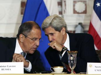 |  y su par estadounidense John Kerry (der.).JPG) El secretario de estado yanqui, Kerry con el canciller ruso Lavrov