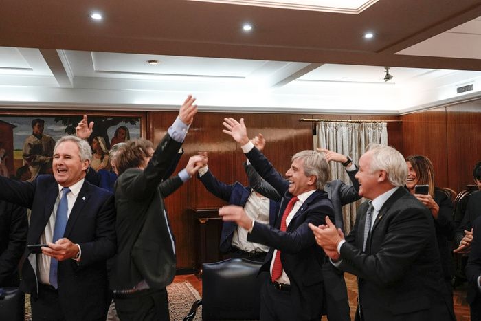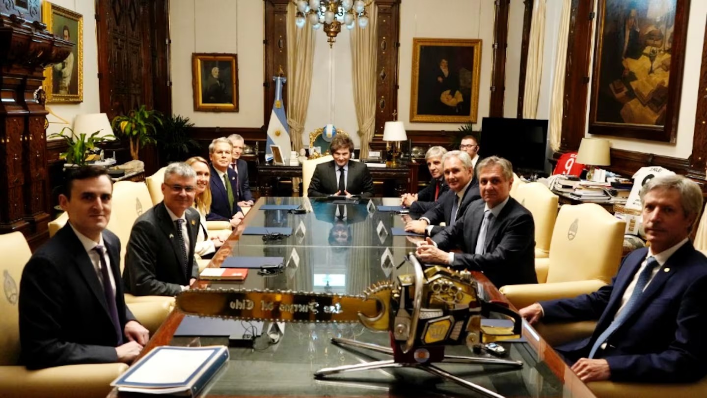 Milei con Caputo y secretario-del Tesoro de EEUU, Scott-Bessent