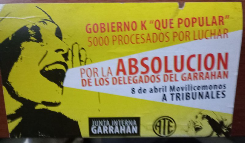 ¿Por qué encubren la ignominia y la mentira de los K cuando en su gobierno no se cansaron de llevar obreros en lucha a la justicia burguesa y condenarlos?