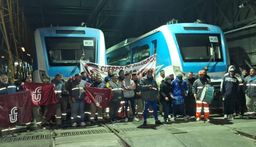 Railway workers during the general strike of May 9 in Argentina