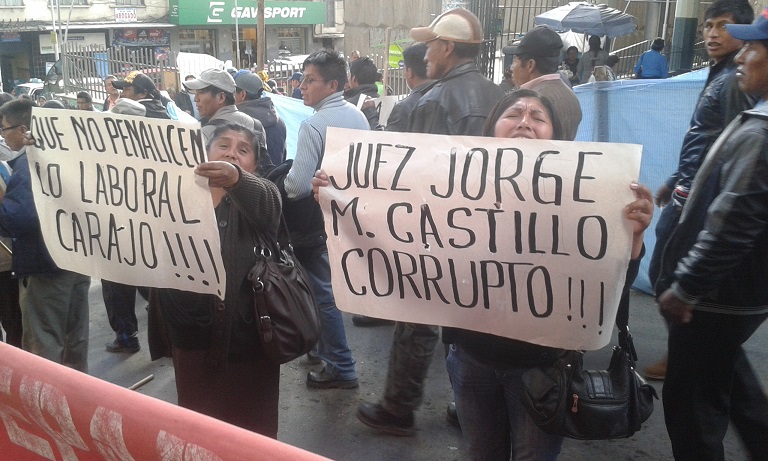 Los obreros se dirigían al Juzgado de la Justicia portando decenas de pancartas: “¡Juez Jorge M. Castillo corrupto!”, “¡Que no penalicen lo laboral carajo!”, entre otras que denunciaban la justicia de los patrones. Asimismo, los obreros de Enatex con mucha bronca se hicieron presentes ya que no percibieron absolutamente nada del gobierno hambreador de Morales. Como era de suponerse, los dirigentes de la COB ni se asomaron a la marcha, y esto es así porque después de haber traicionado la lucha de los fabriles y en particular de Enatex siguen conspirando junto al gobierno qué otra puñalada por la espalda darle a los obreros de base. Por ello, una de las tareas acuciantes parte por retomar el camino que marcaron los fabriles que pugnando por recuperar la COB al servicio de los trabajadores echando a todos los traidores.