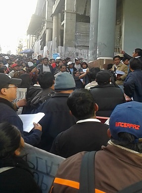 Solo con la lucha, la unidad y la coordinación de los obreros podremos avanzar en frenar el ataque del gobierno de Morales y arrancar a todos nuestros hermanos de clase de los juzgados burgueses y sus cárceles. ¡Basta de procesar, encarcelar y asesinar obreros y campesinos pobres! ¡Jamás un obrero o explotado solo enfrentando los juzgados y patíbulos burgueses! ¡Pongamos en pie una Coordinadora Nacional de organizaciones obreras y estudiantiles que luche por la libertad y desprocesamiento inmediato e incondicional de todos los obreros, campesinos y estudiantes!