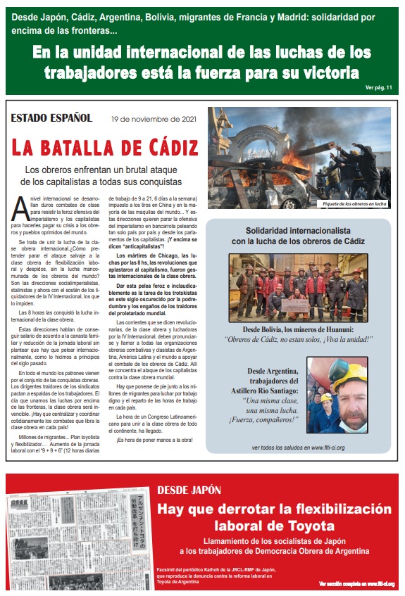 Desde el Estado Español, declaración del Sindicato Único de Trabajadores “Solidaridad Obrera” Ver más