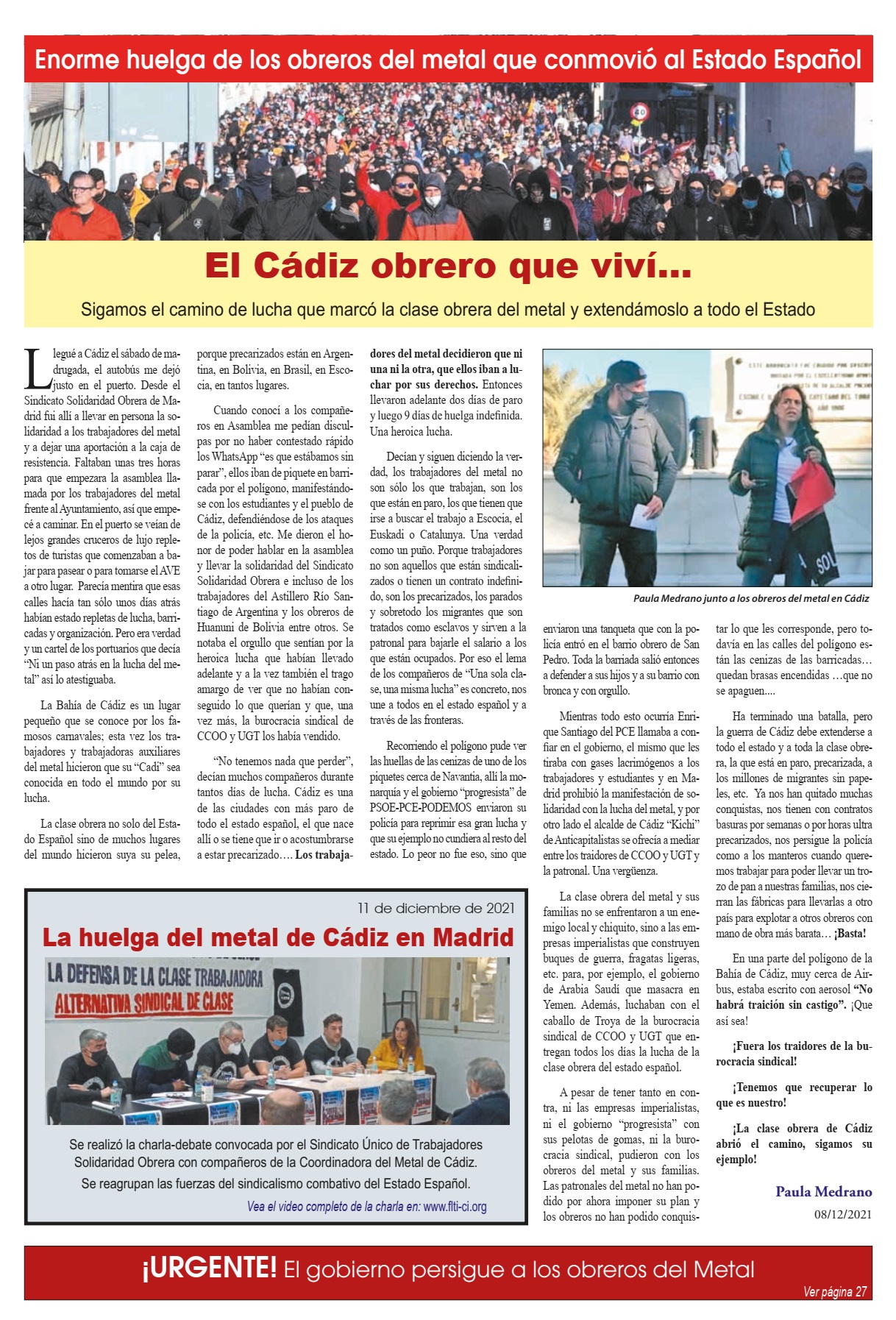 ¡Paremos la persecución a los luchadores del Chubutazo y de la huelga del metal de Cádiz! Ver más