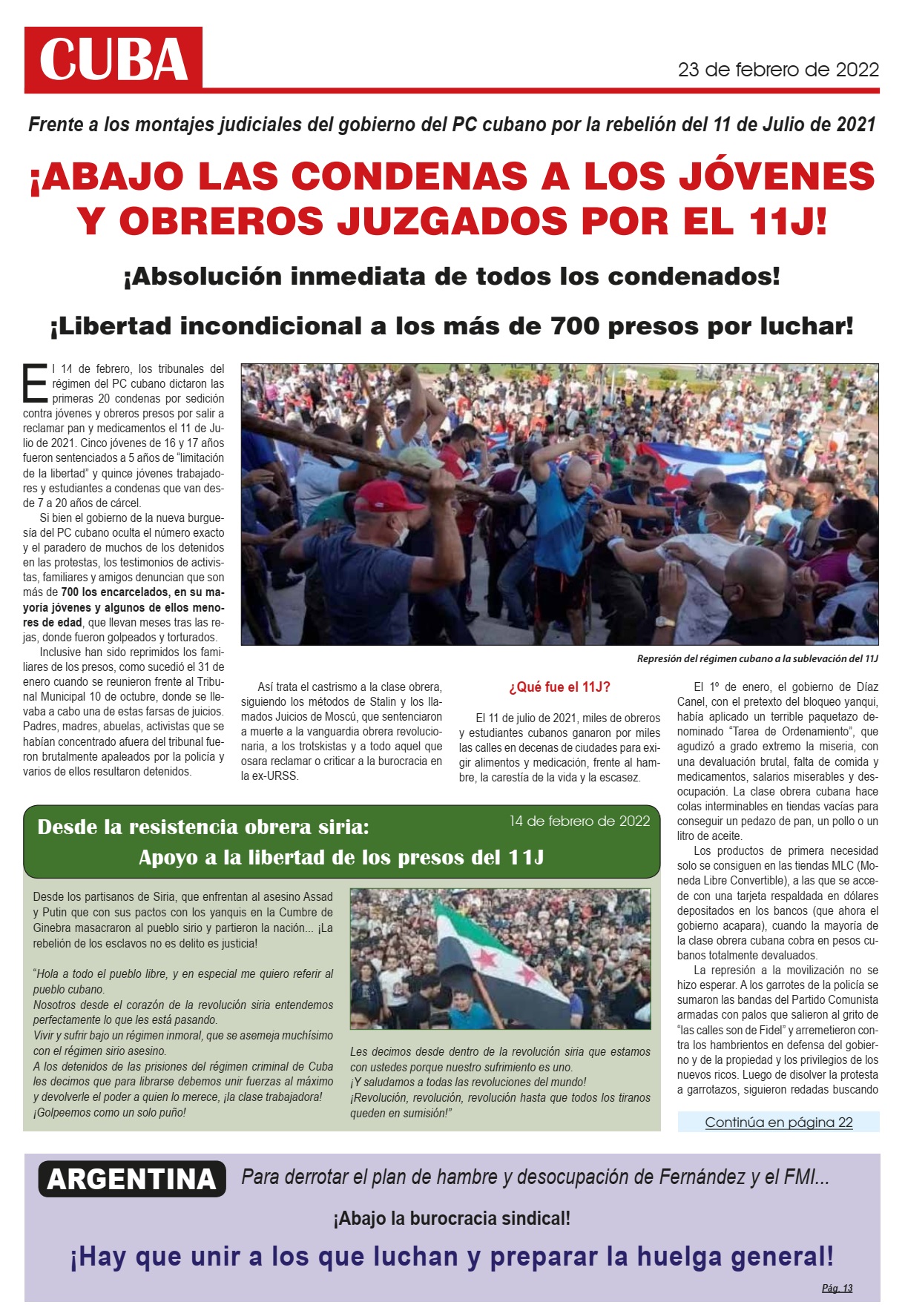 ¡Libertad ya a los presos políticos del levantamiento por el pan del 11J! Ver más