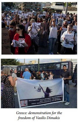 To the cry of “The passion for freedom is stronger than all cells”, the youth and the workers of Greece have taken to the streets for the freedom of the anarchist political prisoner Vasilis Dimakis. Vasilis has started a hunger strike against the inhuman conditions of the jail regime in the midst of the pandemic COVID-19, against tortures and humiliations exerted on him and the other political prisoners.