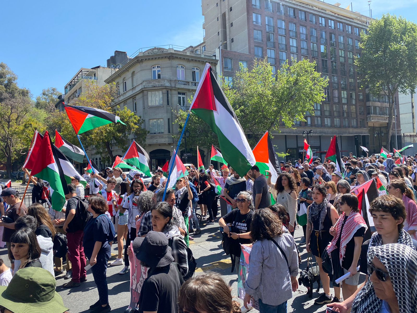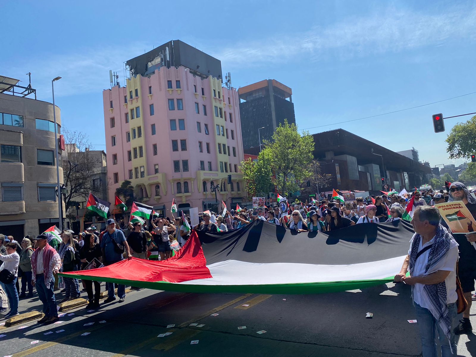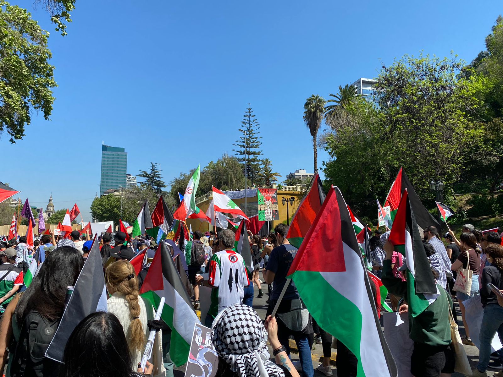 El sábado 5 de octubre miles de manifestantes pro palestinos junto con los comités de estudiantes universitarios solidarios con la causa palestina, integrantes de la Coordinadora por Palestina y organizaciones políticas nos reunimos para volver a marchar en las calles de la Alameda y demostrar nuestro rechazo a la masacre que vive el pueblo palestino hace un año en Gaza, Cisjordania y hoy en el Líbano por parte del sionismo, además los bombadeos del sionismo también han llegado al pueblo yemení y sirio. Nos volvimos a movilizar para decir fuerte y claro que las masas martirizadas de Palestina no están solas, ni mucho menos olvidadas, así entre banderas palestinas y libanesas los gritos de lucha fueron: “Gaza resiste Palestina existe” “Beirut resiste el Líbano existe” “Israel asesina, los yankis patrocinan” “Viva la resistencia Palestina, Viva Palestina libre” “Desde el río hasta el mar Palestina vencerá”
